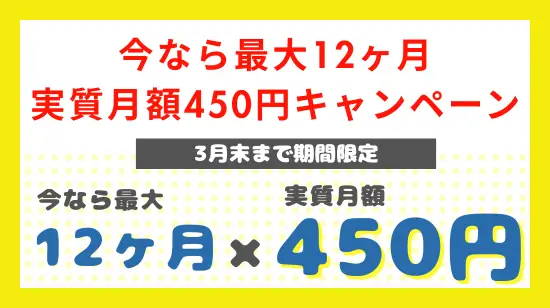 「今なら最大12ヶ月実質450円キャンペーン」実施中!
